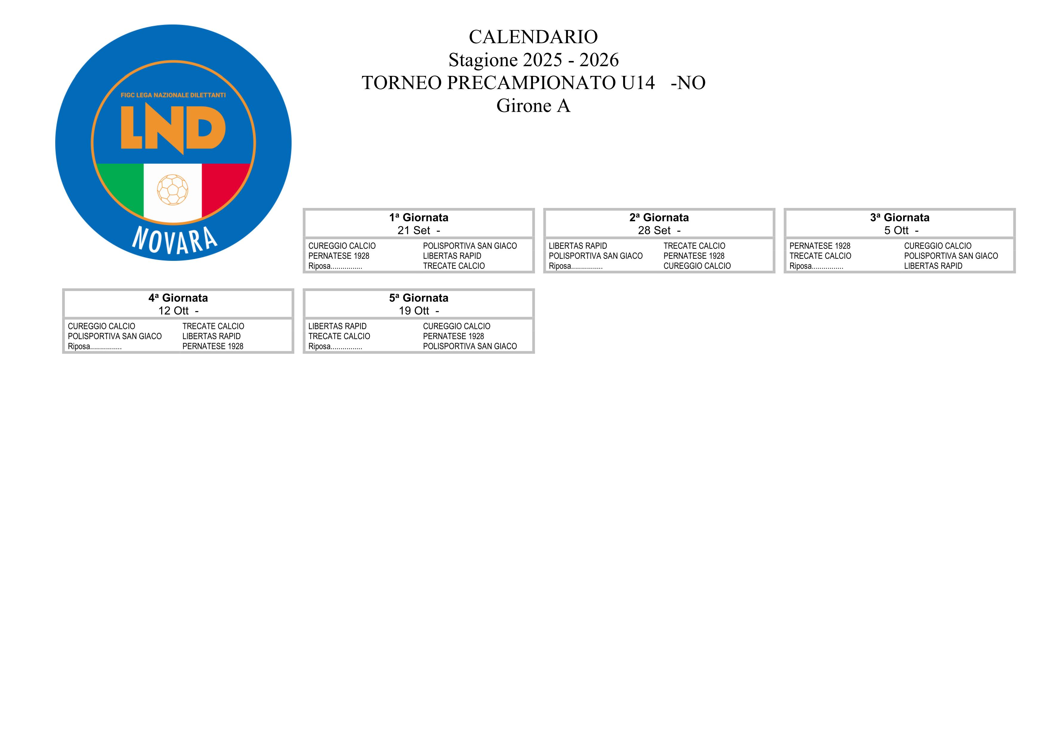 Calendario partite Giovanissimi U14